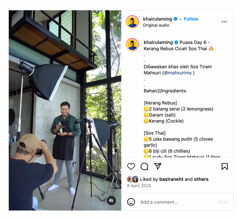 Influencers are more than personified billboards who pose with the trendiest items online. They’re experts in creating content with a personal touch. Take your time to identify the types of influencers that best align with your campaign or overall brand story. Let’s take the example of Mahsuri Food collaborating with Khairul Aming, a well-loved and respected Malaysian influencer known for his simple, authentic cooking videos, usually accompanied by witty commentary. Mahsuri Food is a local cooking sauce brand that has been around since the 1990s, and the collaboration with Khairul Aming built enough awareness for it to finally emerge as a household name.